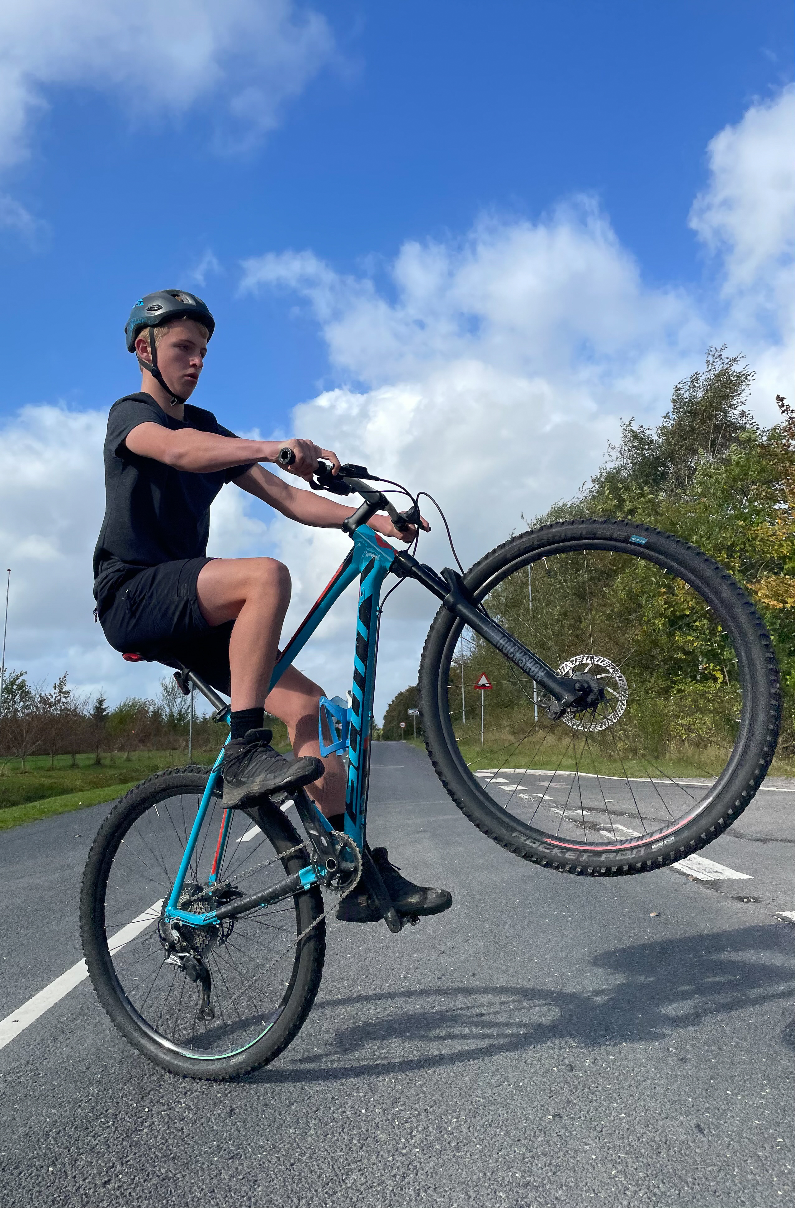 ”Da videoen kom på, begyndte nogle af de andre at hviske om, at det nok var mig, der havde vundet prisen, og det havde jo så ret i,” fortæller Andreas Bay Lastein. Mens eleverne klappede, glædede han sig over udsigten til at skifte sin godt slidte mountainbike ud med en splinterny Principia mountainbike, som er præmien til Årets Børnecyklist. 13-årige Andreas kører nemlig Mountainbike-løb.