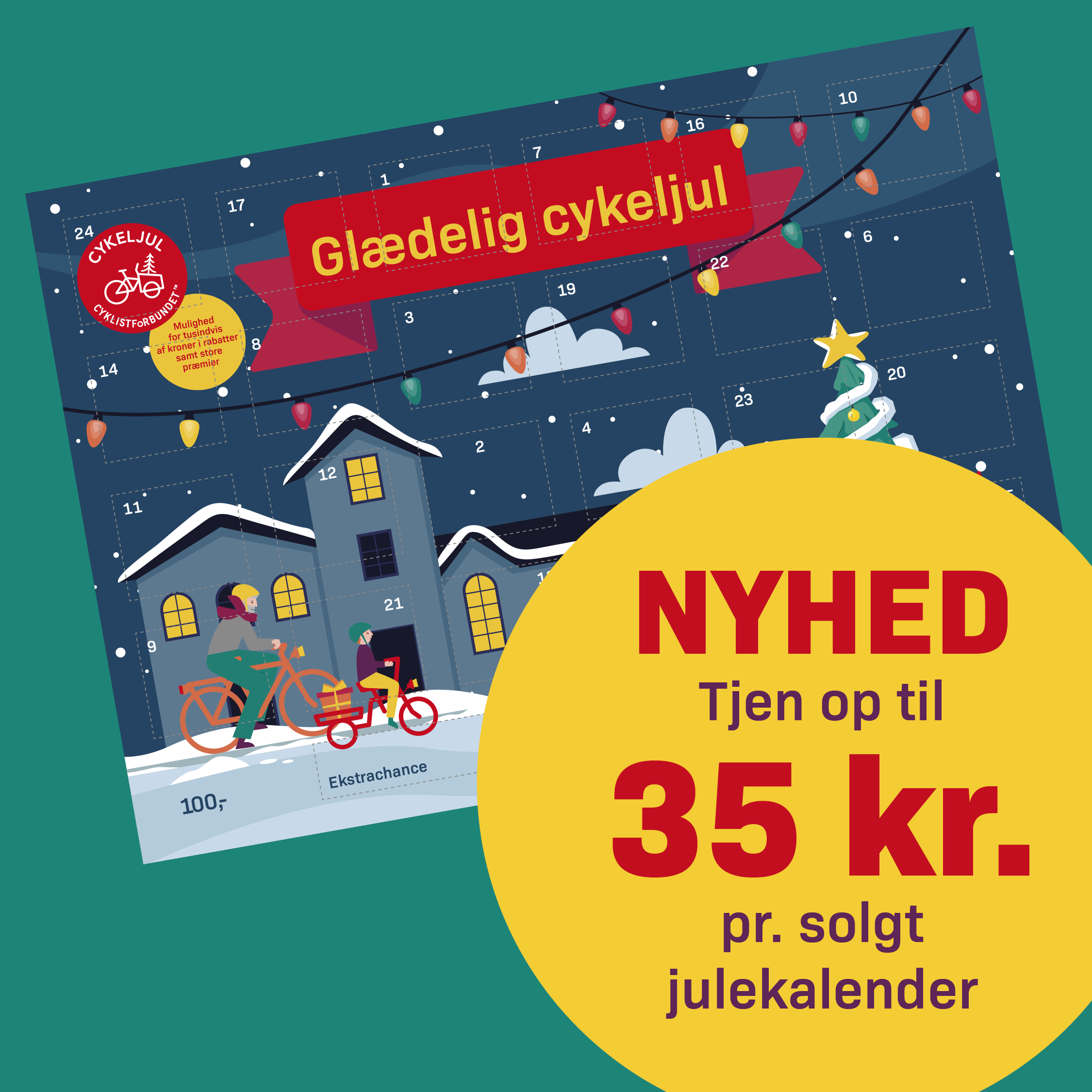 For første gang vil den flotte og dekorative julekalender – Cykeljul – kunne pryde de danske hjem i december måned. Julekalenderen er fyldt med præmier og rabatter fra udvalgte virksomheder til at gøre julen endnu sjovere. Undervejs i december samler man desuden lodder til en række større præmier – fx en elcykel og gavekort til Brugsen på 25.000 kroner.