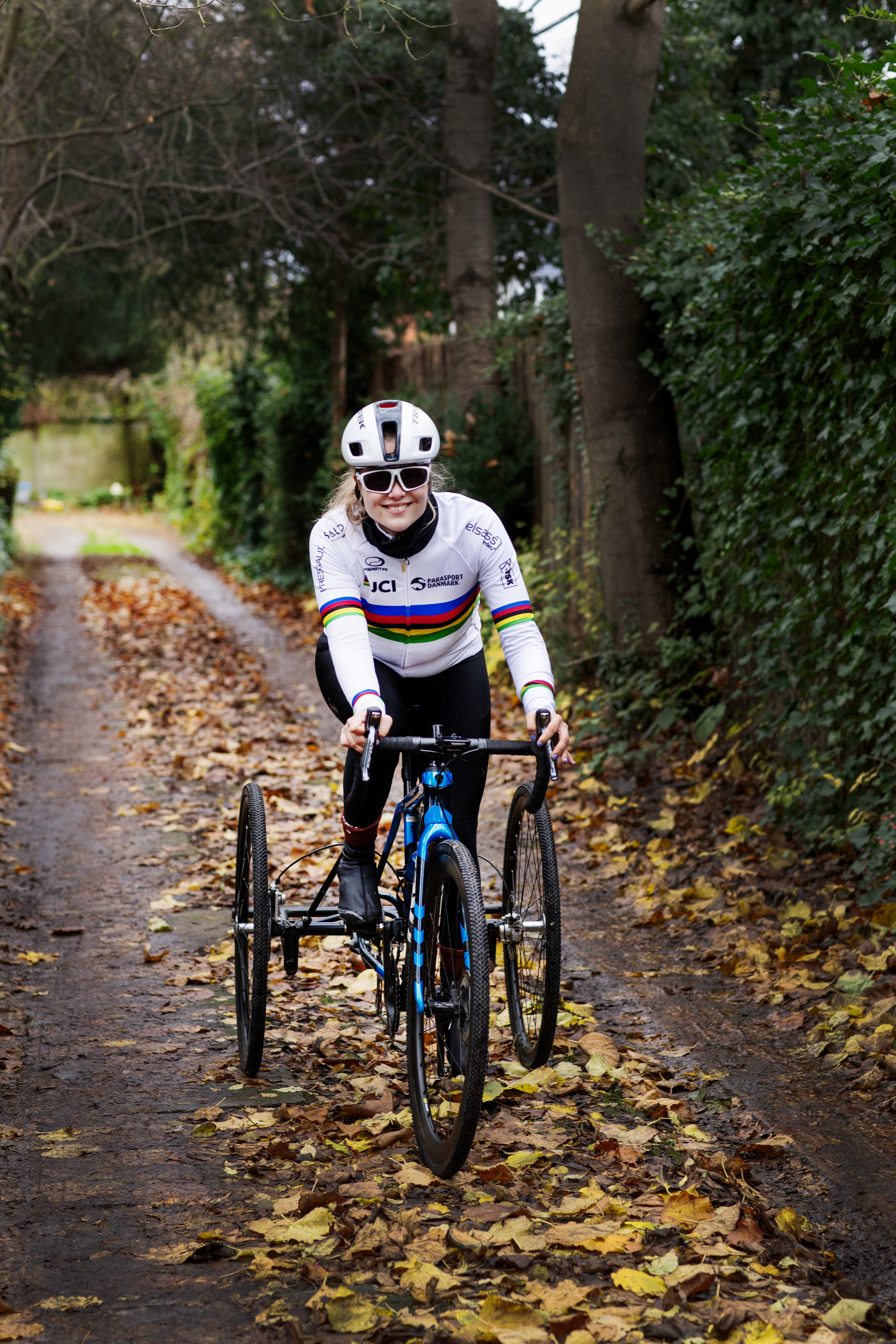 Ordene kommer fra 26-årige Emma Lund, og hun siger det, selvom hun er verdensmester i landevejscykling. Mere præcist vandt hun VM i linjeløb i T2-klassen for kvindelige para-cykelryttere i Skotland i august 2023. En titel, der har krævet ’blod, sved og tårer,’ som hun siger. Emma Lund har nemlig cerebral parese – et medfødt handicap, som giver motoriske udfordringer og blandt andet besværer hendes gang. Det er derfor, hun ikke lige kan hoppe på en almindelig cykel og køre hen til en veninde – eller til en café for at møde en journalist for den sags skyld. For den cykel, hun bruger til konkurrencer, er slet ikke stabil nok til almindelig bykørsel, fortæller hun.