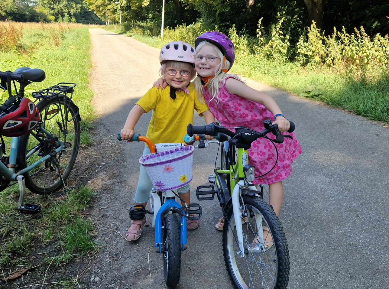 Det styrker vores bånd som familie at være ude og bevæge os sammen. Her var vi på cykeltur for at fejre, at Emma havde lært at køre uden støttehjul. Sara støtter godt op om sin lillesøster og opmuntrer hende.Karoline Sass, Mor til Sara
