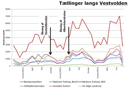 Forbedringer af infrastrukturen, fx nye cykelbroer, forbedret belægning og belysning samt færre steder, hvor der skal stoppes