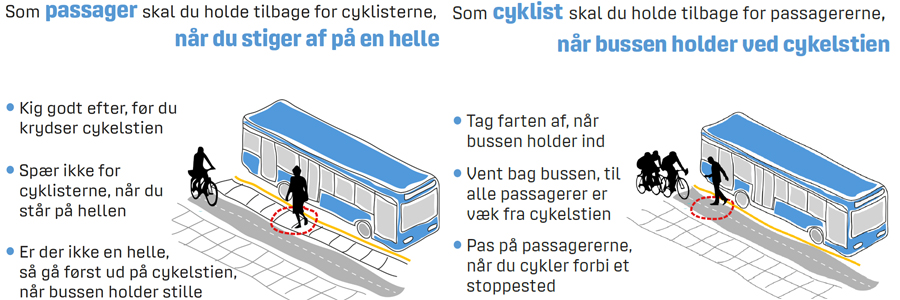 Dét skal du gøre som cyklist: Du kan blot køre forbi hellen uden at skulle holde tilbage for buspassagerne - men hold alligevel et vågent øje og vis hensyn, hvis nogen er dårligt gående eller har overset, at der er en cyklist på vej.