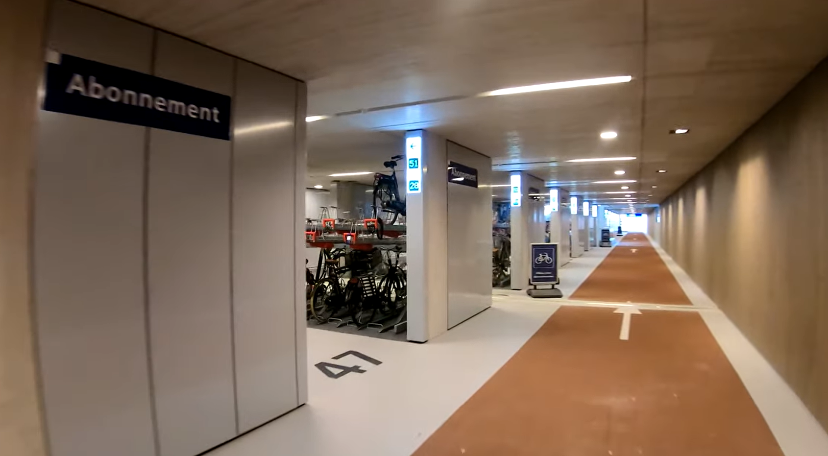 Foto: Utrecht Centraal har et underjordisk cykelparkeringsanlæg med direkte adgang for cyklister.