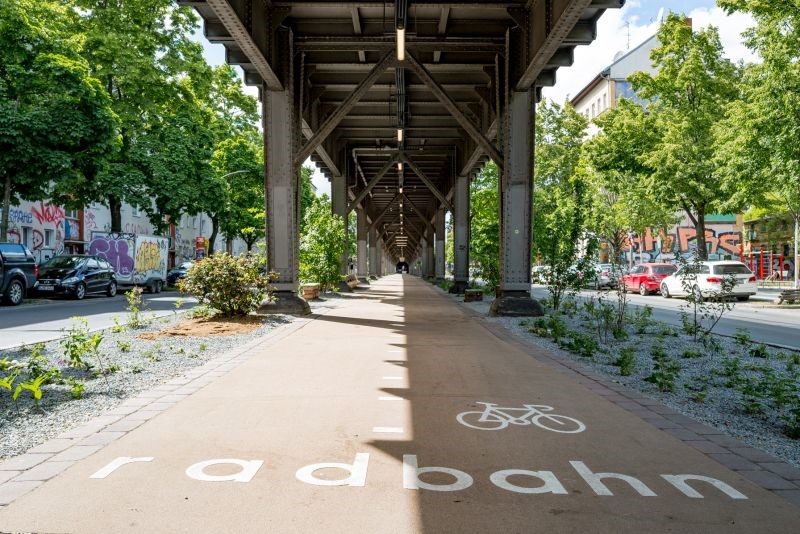 Foto: Radbahn under U1-højbanen i Kreuzberg, Berlin