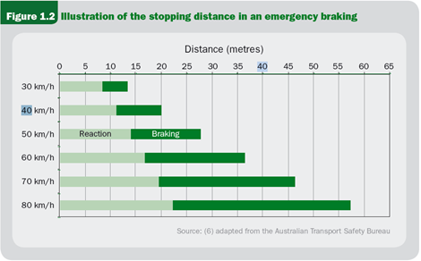 Figur 2. Reaktions- og bremsetid ved forskellige hastigheder.