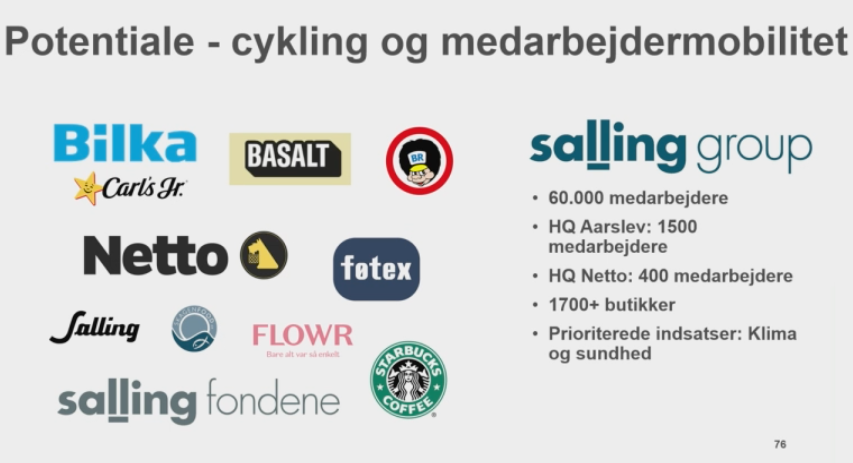 Salling Groups repræsentant kunne ligeledes bekræfte, at netop ændrede skatteregler for personalegoder - incl. cykel udlånt af arbejdspladsen - kunne få en fin effekt for Salling Groups 60.000 medarbejdere.