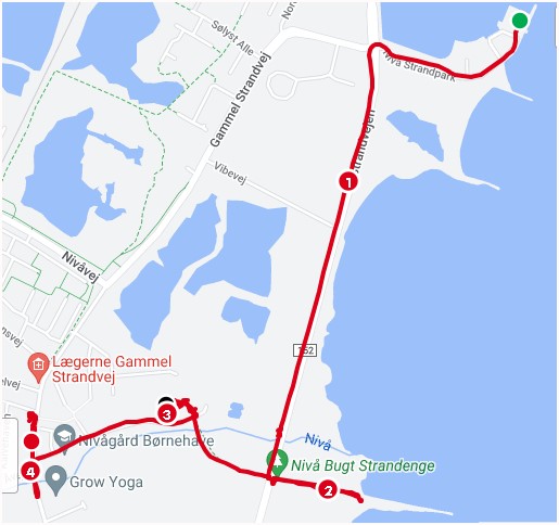 Herunder et kort, der viser turen fra Kokkedal Station til Rungstedlund