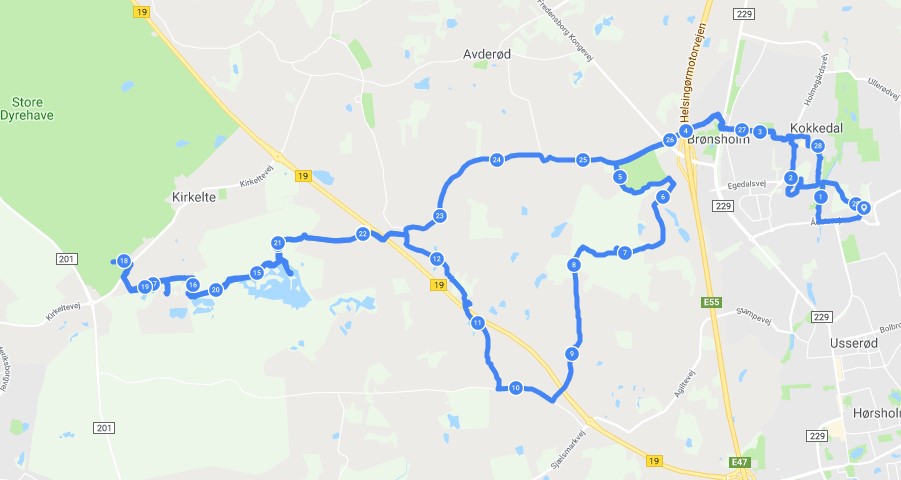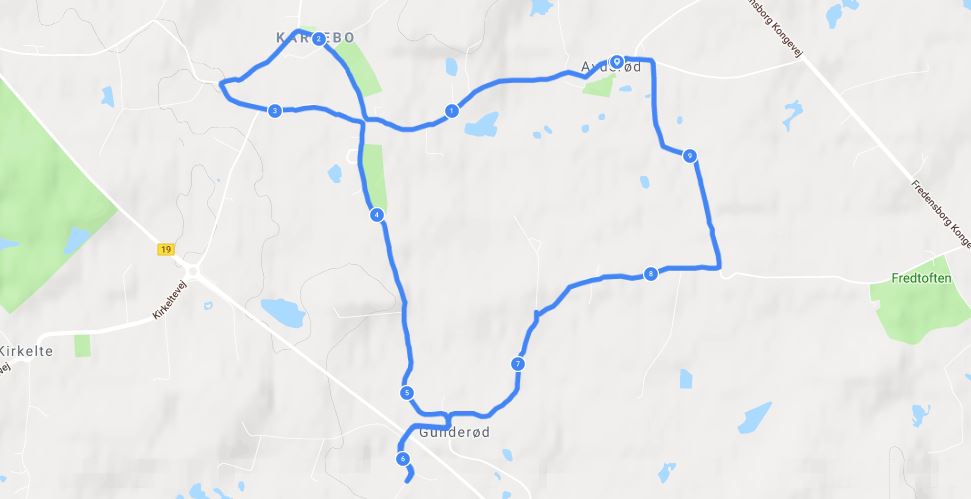 Herunder et kort over den kørte rute