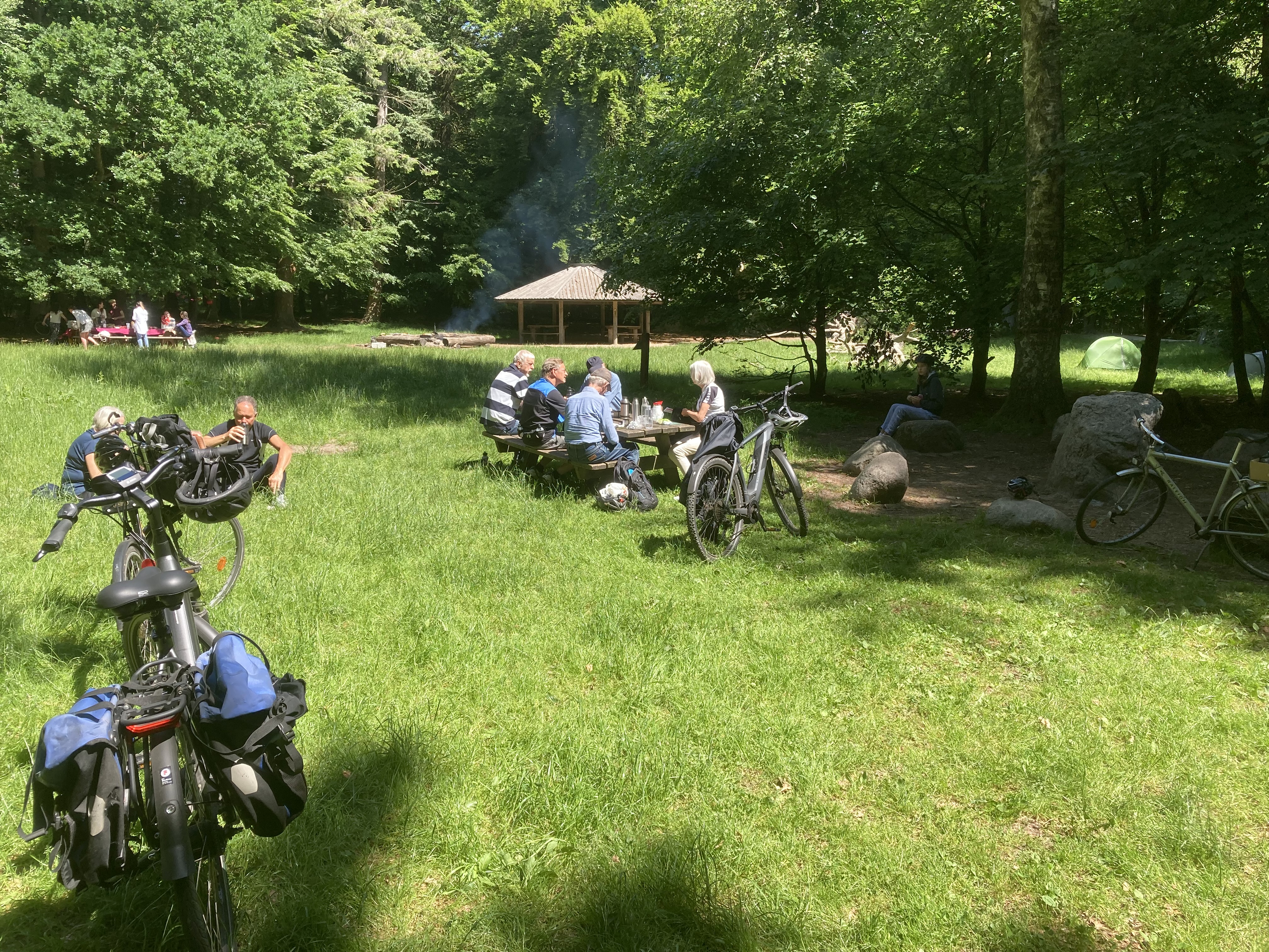 Herunder et foto fra frokostpausen på en græsmark ved Skodsborg Station.