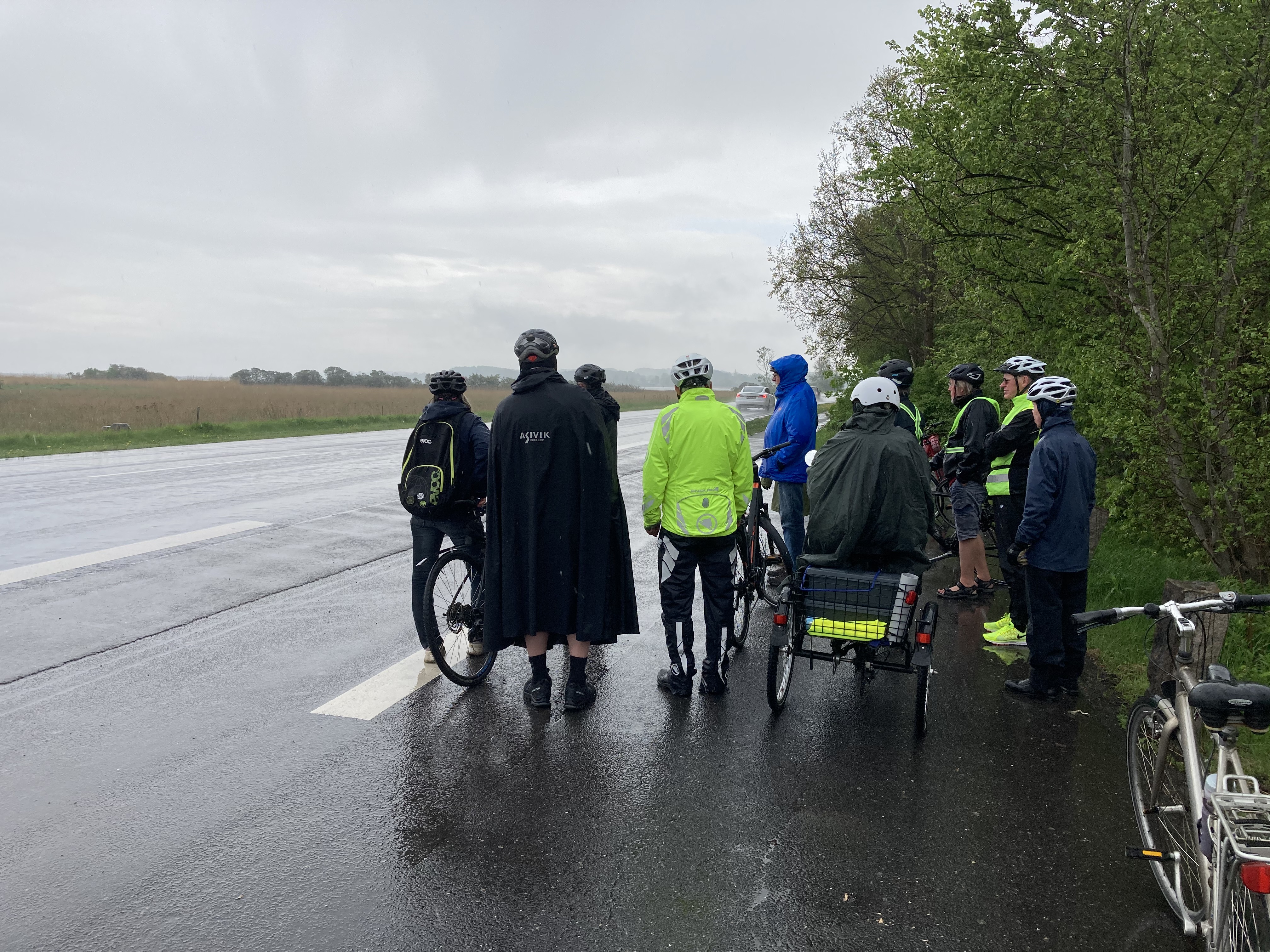 Trods varsel om regn var der mødt 16 morgenfriske cyklister op ved parkeringspladsen ved Restaurant Trekosten på Nivå Havn.
