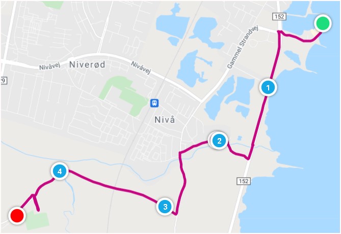 Kort over dagens cykeltur. Den blev på knapt 5 km.