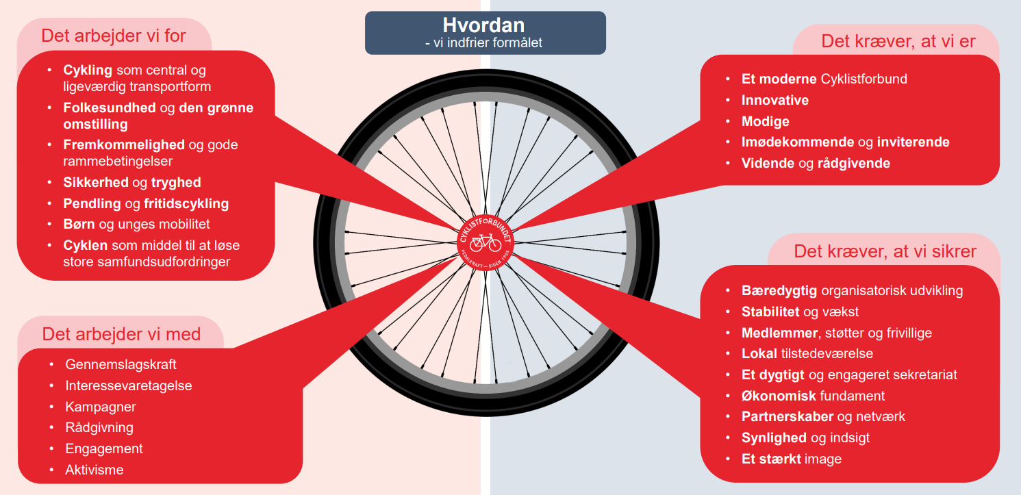I Danmark har cykling gennem generationer gjort en stærk forskel for vores liv og hverdag, vores sundhed, vores miljø og vores byer. Den stærke danske cykelkultur er et resultat af vores personlige valg og gode, politiske prioriteringer. Den udvikling skal fastholdes og forstærkes. For det er mere nødvendigt end nogensinde før, at flere vælger cyklen. Derfor arbejder vi i Cyklistforbundet ihærdigt for de politiske prioriteringer, som giver alle muligheden for at vælge et aktivt og sundt hverdagsliv, og som forløser de enorme samfundsmæssige potentialer, der ligger i en stærk cykelkultur.